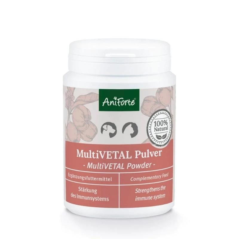 La polvere di AniForte® MultiVETAL contiene le 13 più importanti vitamine naturali idrosolubili in acqua e liposolubili e in alcuni casi anche i loro precursori.