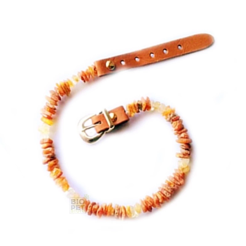 I collari sono realizzati in ambra naturale GREZZA e sono dotati di comodo CINTURINO REGOLABILE IN CUOIO..
