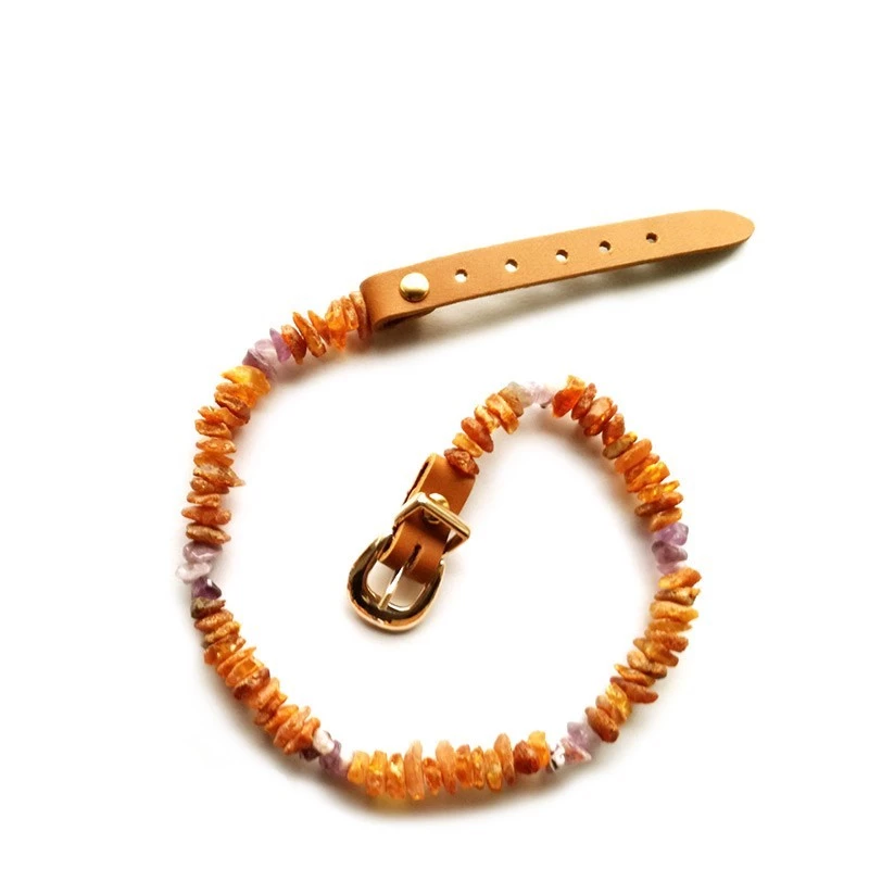 I collari sono realizzati in ambra naturale GREZZA e sono dotati di comodo CINTURINO REGOLABILE IN CUOIO..