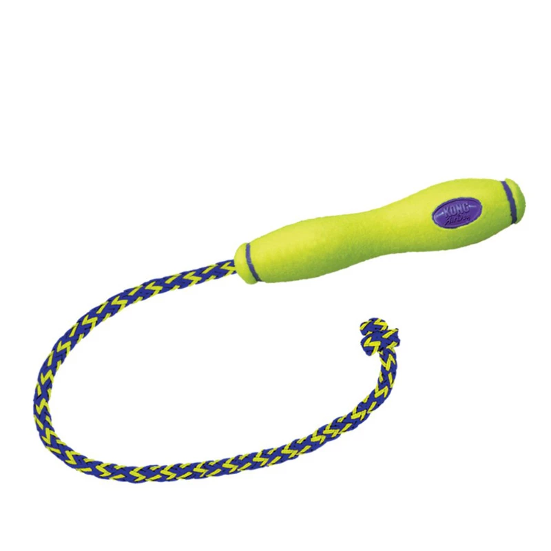 Il KONG AirDog® Fetch Stick con corda galleggia sull’acqua ed è dotato di una corda da lancio di alta qualità.