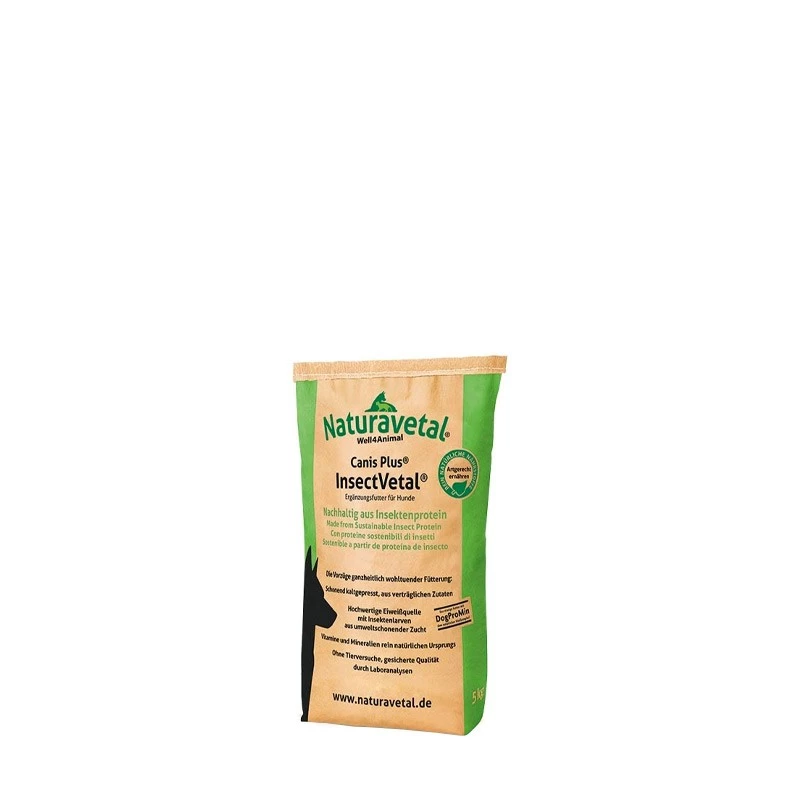 Come ricco alimento supplementare, Canis Plus® InsectVetal® dovrebbe essere somministrato in alternanza con alimenti completi, perché il contenuto di calcio e fosforo degli insetti è naturalmente diverso da quello della carne o del pesce.