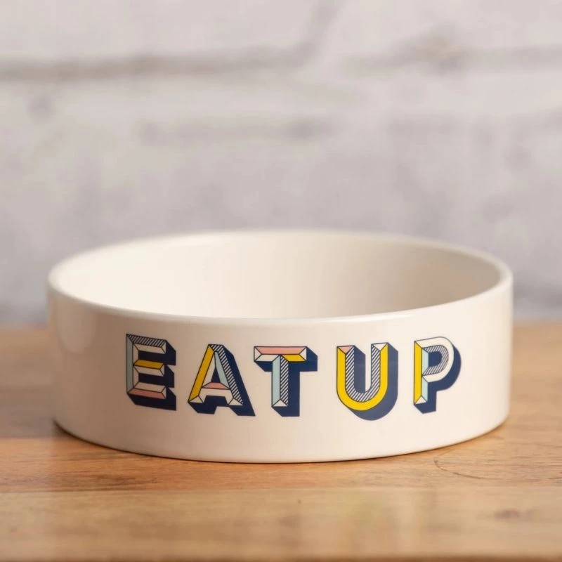 La ciotola per animali domestici RETRO’ è un piatto decorativo di design con una giocosa stampa EAT-UP.