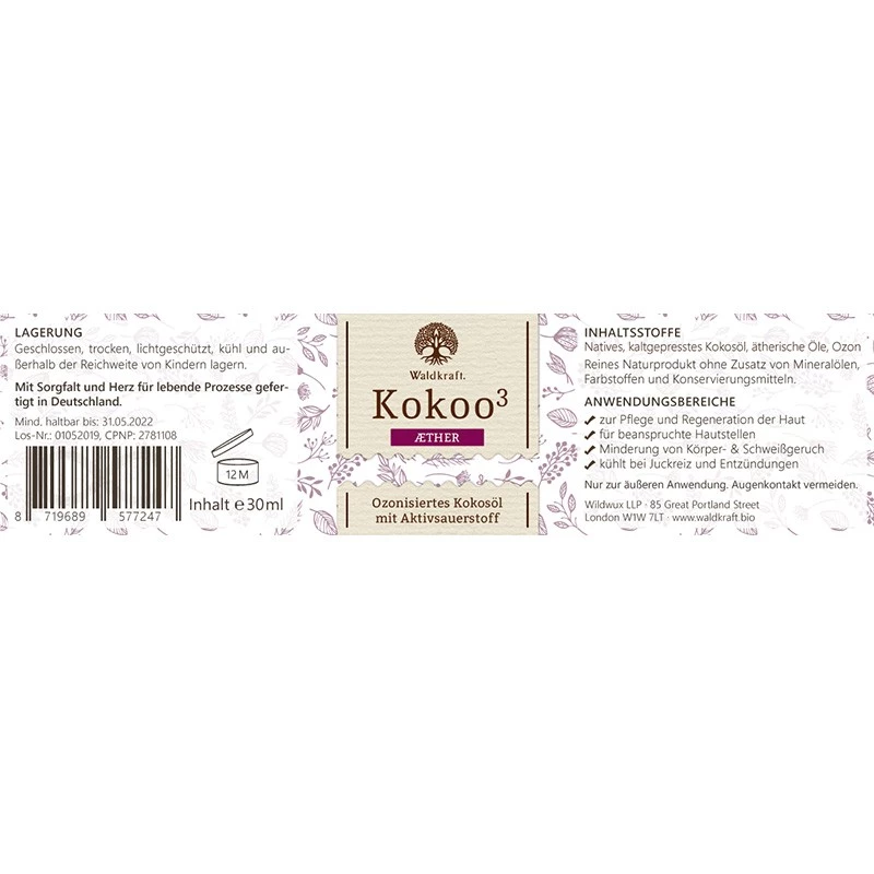 Kokoo³ Aether – Olio di cocco ozonizzato con oli essenziali per la cura della pelle.