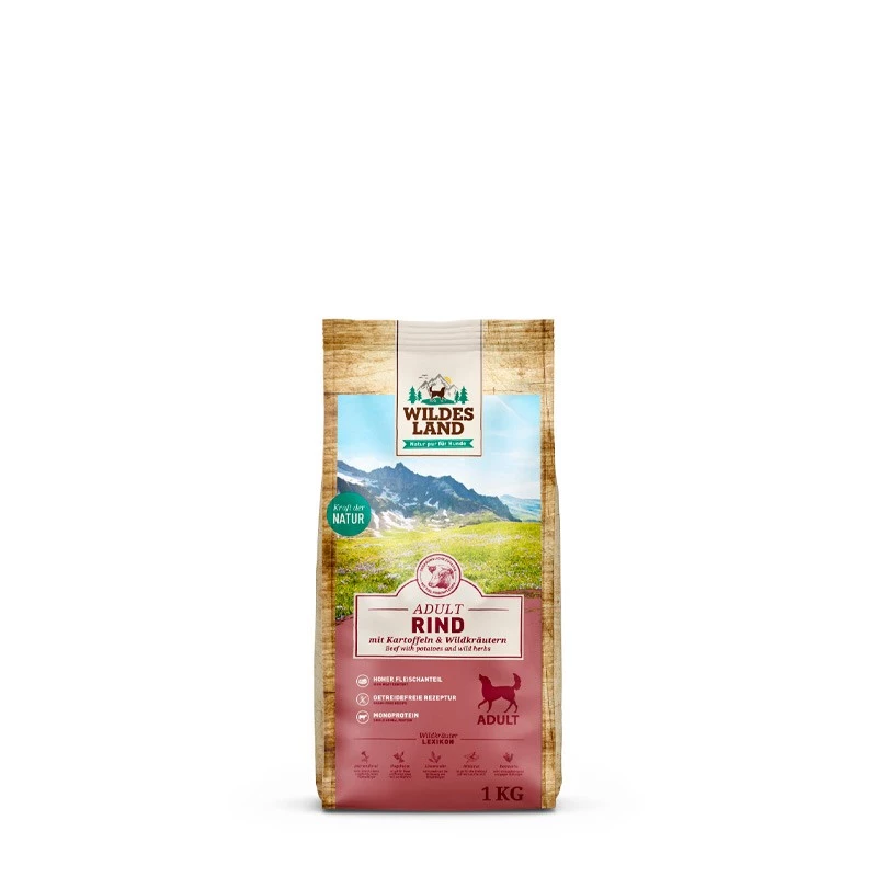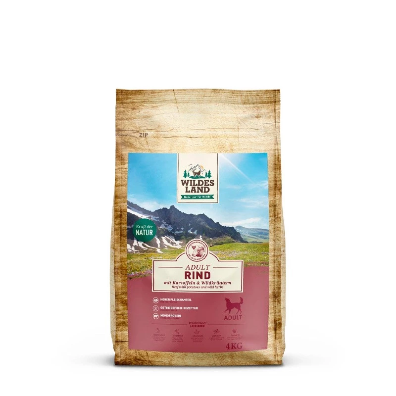 -Una sola fonte proteica animale: grazie all’elevata percentuale di carne fresca proveniente da una sola fonte proteica, Wildes Land Rind ha un’eccellente accettabilità e tollerabilità.